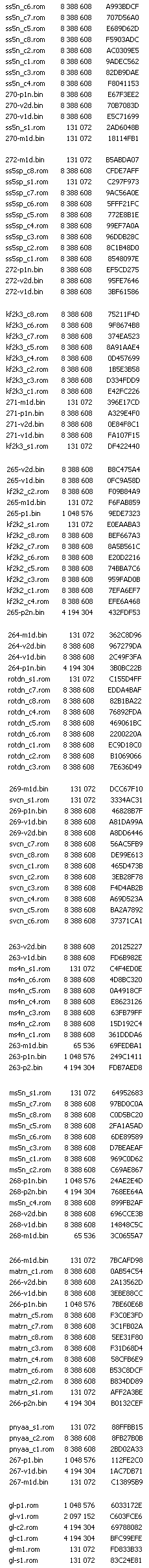 Mr.X Posted November 20, 2004 Posted November 20, 2004 (edited) As far as I know, roms patches 'R not allowed on the forum... am I wrong ? Here is a pic of decrypted & fixed roms crc U should use (mslug4nd, svcnd & kof2k3nd 512 K S1's 'R not added yet) : Edited November 20, 2004 by Mr.X